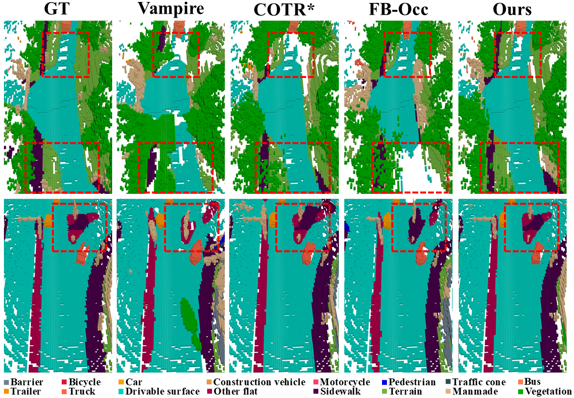 Multi-view images are processed by a shared backbone to generate a structured 3D voxel representation. The CPG generates foreground and background prototype groups, which guide the TSFG in refining task-relevant features for 3D object detection, BEV map segmentation, and 3D occupancy prediction. Task-oriented prototypes derived from the 3D object detection and BEV map segmentation heads are then integrated with the prototype groups via the SPA, forming Scene Prototypes. These Scene prototypes are subsequently processed by the occupancy decoder to produce the final 3D occupancy predictions.